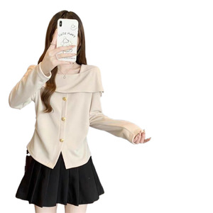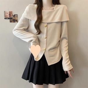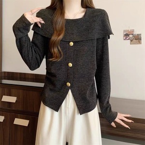 女性用の大きいサイズのレトロな長袖セーター、春の高級ソフトワックス状ボトムシャツ、太いお腹カバー不規則トップ