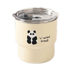 シンプルなコーヒーカップ 304 ステンレス鋼食品グレード漫画透明蓋ストローカップルウォーターカップドロップシッピング
