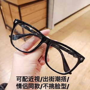 現物スター同モデル高級感黒枠眼鏡クローン心男大枠女すっぴん文芸レトロ平光鏡