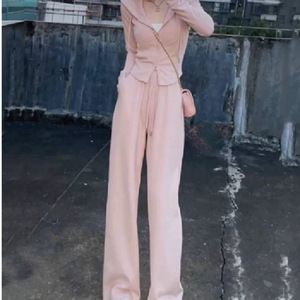 【人棉空气层】连帽拉链卫衣+阔腿裤两件套时尚洋气运动套装女