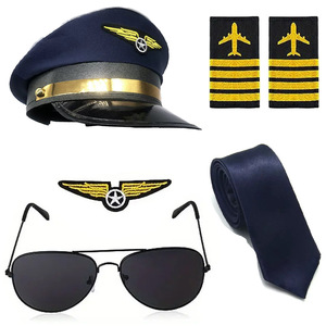 ハロウィン航空パイロットキャップコスチュームアクセサリーキャプテンハット肩章メガネネクタイコスプレセット