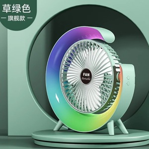 カラフルなランニングライトデスクトップファンUSB充電台ファン家庭用寮多機能デスクトップ電気スタンドオフィスファン