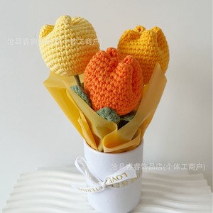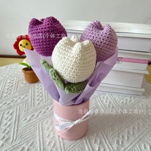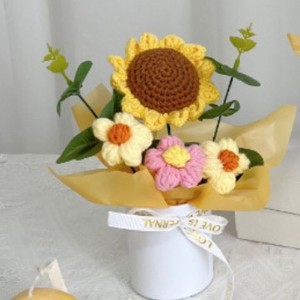 ニット完成品ギフトフラワー手作りかぎ針編みフラワーローズハグバケツ完成品卸売クリエイティブ友人や母親へのギフト