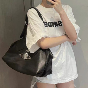 西太后の中古モデルの大きい土星の柔らかい皮のトートの放浪の包みの大容量のシングル肩は黒い銀の小さい衆のわきの下で包みます