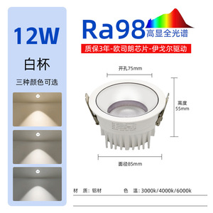 全スペクトル深蔵防グレア灯家庭用ダウンライト客間欧司朗光源レイフォード廊下通路スポットライト
