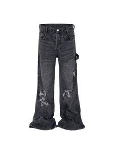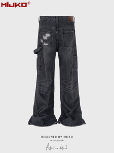 MIJKO紳士服女性アメリカンマイクロラッパ広足ズボン男女同型黒灰水洗いナイフ猫ひげジーンズ潮
