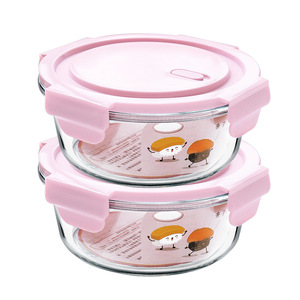 サラリーマン向け丸型ガラス弁当箱、電子レンジ対応、専用弁当箱、蓋付き保存箱、蓋付きフルーツボックス