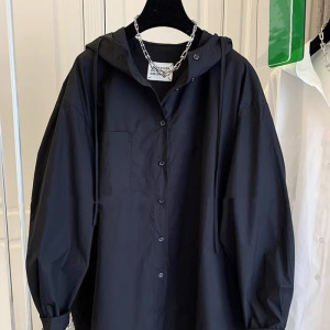 特大サイズ 150kg ファット mm ゆったりカバー肉フレンチ長袖シャツ女性の秋カジュアル多用途フード付きジャケット 240