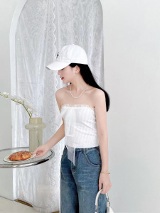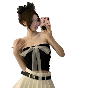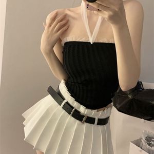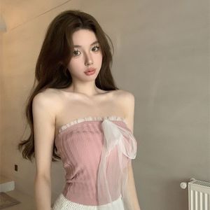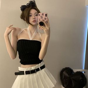 女性用メッシュストラップホルターネックチューブトップアウタートップ、夏服、純粋な欲望、バックレス、タイトフィット、ショートスタイル、胸を包むベスト