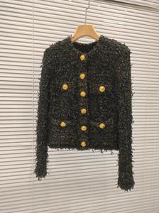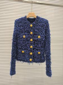 2025法式小香风气质名媛轻奢金属扣粗花呢圆领短款外套修身上衣
