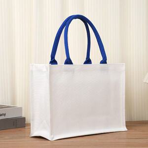 ラミネートキャンバストートバッグ、カスタムメイドの立体的な厚みのあるリネンバッグ、カスタムメイドのリボン広告トートバッグ、プリントロゴ
