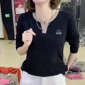 2025春秋季新款女装黑天鹅纯棉打底长袖T恤时尚减龄肚子显瘦上衣