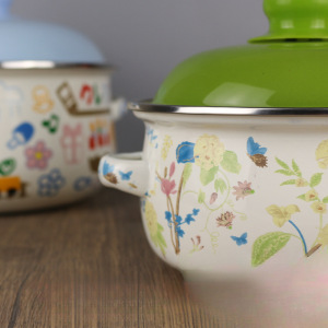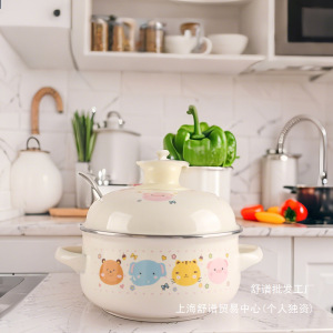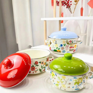 平底泡面碗宿舍学生猪油罐搪瓷搪瓷锅加厚双耳家居猪油罐带盖