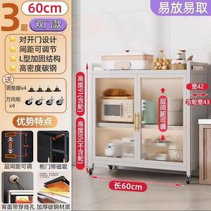 起爆キッチンキャビネット炭素鋼は、ドア付きロッカーの多層ドア付き電子レンジ収納キャビネットに車輪付き