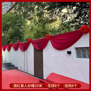 赤いビューティーガーゼカーテン 20m + 赤い花束 8 個 - 仕様なし