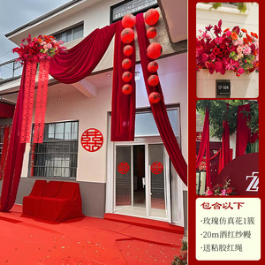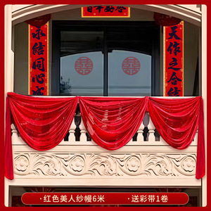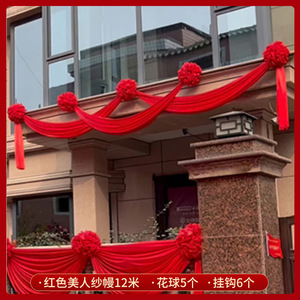 【大きな赤いガーゼカーテン+造花+長いストリップ】庭の装飾 - 仕様なし