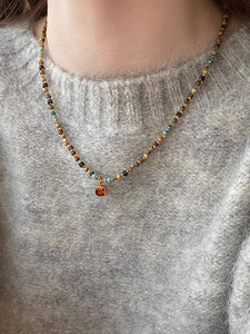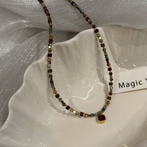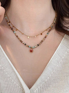 U優カラー天然石赤ジルコン方糖ネックレスシンプルで高級感があります。