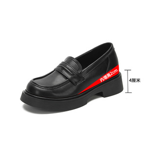 6cm 本革ブラウンラウンドトゥローファーレディースインナー高さ増加厚底小型革靴シンプルなサイズ 32 シングルシューズ