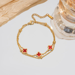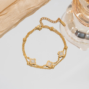 国境を越えた新しい二層マザーオブパール四つ葉のクローバーチタン鋼ブレスレットライト高級ハイエンド女性の人気ブレスレットシンプルなハンドジュエリー