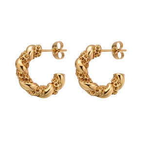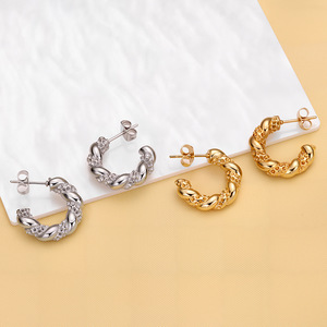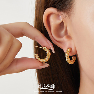 欧米国境を越えたステンレス麻花形ピアスファッション高級感18k金イヤリング女性チタン鋼耳飾り