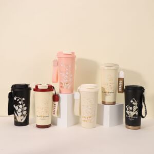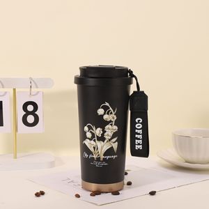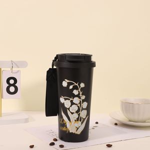 网红ins风铃兰花咖啡杯带提绳316不锈钢保温杯外出便携双饮水杯