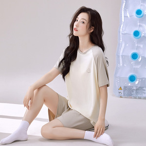 【涼感タイプ】7a抗菌モードルコットンレディースパジャマ半袖夏の薄い家庭服セットパジャマ女