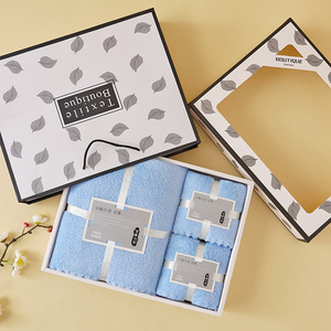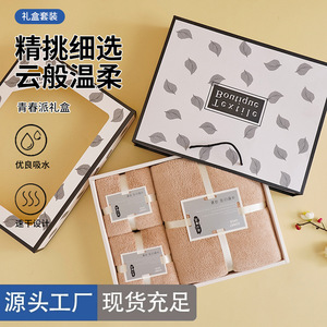 厚みのあるコーラルベルベットタオルバスタオル3点セットギフトボックス会社刺繍ギフトお土産結婚式のお返しギフト卸売