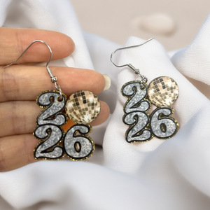 クロスボーダー 2026 大晦日デジタルアクリルイヤリングレトロファッションディスコボール音楽祭ドレスイヤリング