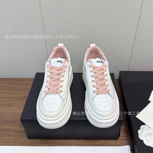 ハイバージョンのXiaoxiangfeng本革白靴カジュアルレースアップカラーマッチングパンダスニーカーマフィン厚底スポーツシューズ女性用