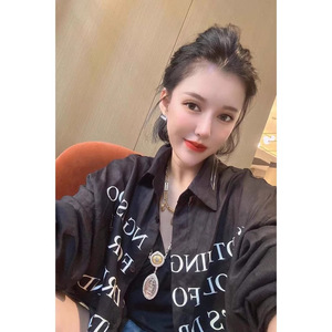 大码女装300斤胖mm夏季新款字母印花不规则薄款polo领网红衬衫女