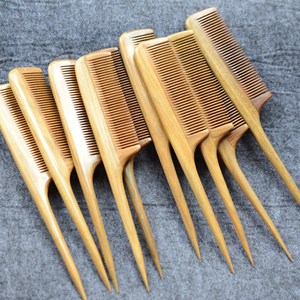 厂家直销天然绿檀木梳子 21CM 微瑕C级精品细齿加厚尖尾梳