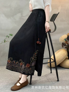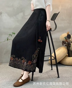 国風気質一歩a字スカート女性2025新型民族風ジャカードサテン重工刺繍オープンスカート