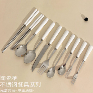 セラミック柄ステンレスナイフフォークスプーン食器三点セットins风フルーツフォークデザートスプーンフォークアイスクリームスプーン