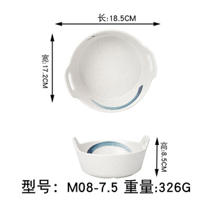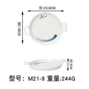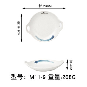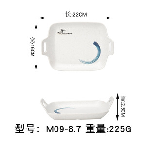 Jiangxue メラミン模造磁器双耳広東茶レストランプレートファーストフードハンドル付きパスタプレートバーベキューバーベキュークリエイティブ食器