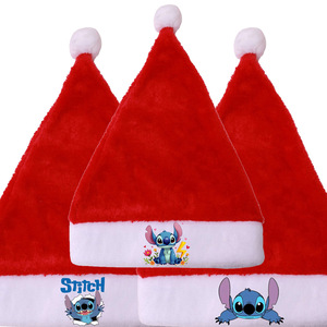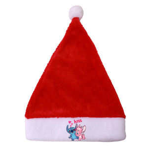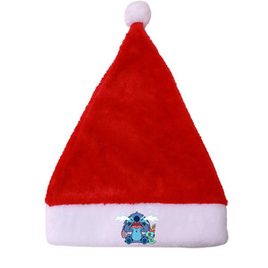 圣诞节装饰短毛绒加厚星际宝贝史迪仔卡通印花可定logo圣诞帽