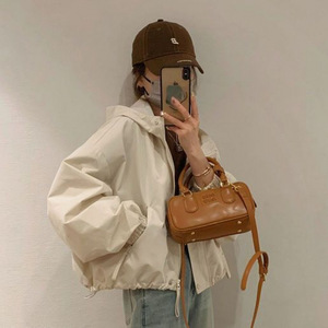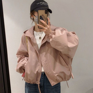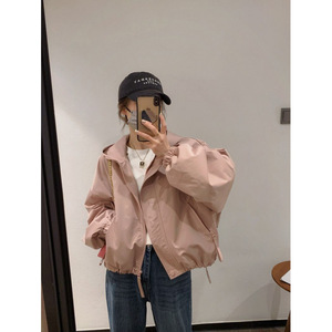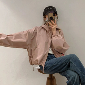 连帽外套女春秋季新款韩系短款冲锋衣时尚百搭休闲宽松短款夹克潮