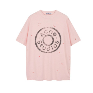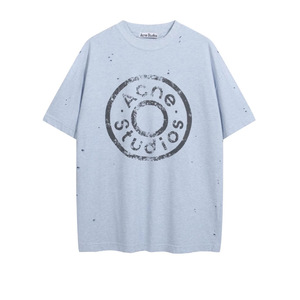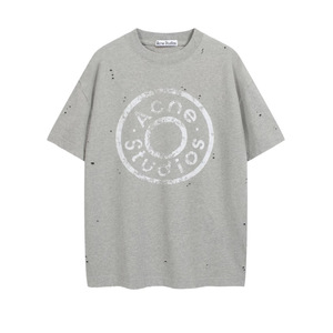新作 ダメージ加工 ボタンロゴ レタープリント 半袖 男女兼用 インナーTシャツ トレンドメンズ
