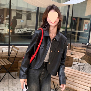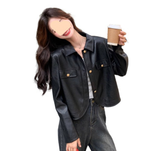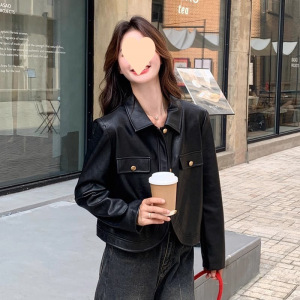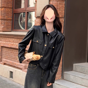 黒の高級レザージャケット女性のための春ショート 2025 新しいレトロな小柄なハイウエストレザージャケット