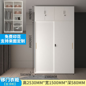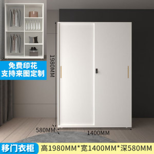 ブリキのワードローブスチールホームベッドルーム引き戸子供用プリントワードローブロック付き大容量収納キャビネット
