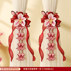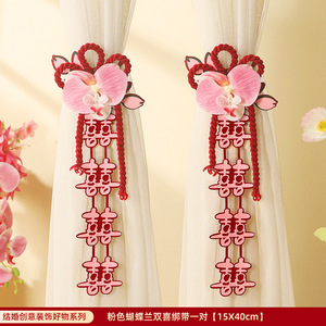 ウェディングルームウェディングカーテンストラップ結婚式のハッピーワード装飾花胡蝶蘭ペンダントカーテンロングウェディングカーテンバックル吊りストリップ