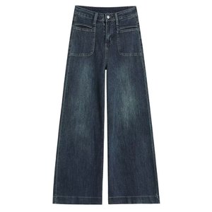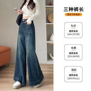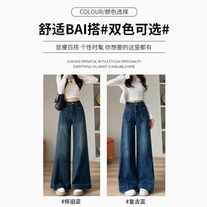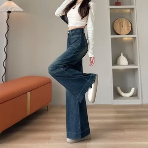 女性のためのレトロなワイドレッグジーンズ 2025 春の新しいハイウエストルーズペアシェイプ弾性フレアパンツ