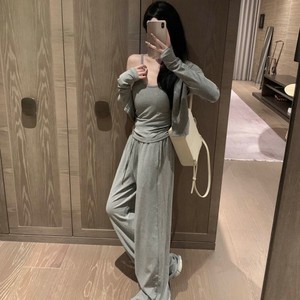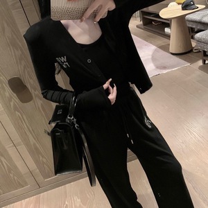ch25ss春夏新款三件套套装黑灰吊带背心+小外套+休闲裤时尚