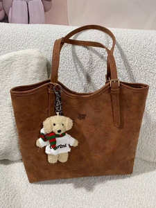 パン子犬ハッピーパーティートートバッグレディース大容量ブラウン手提げショルダーバッグ2025新作