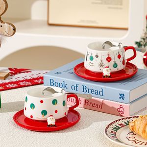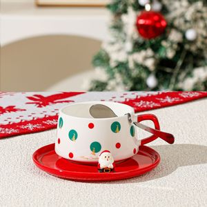 クロスボーダークリスマスクリエイティブ水玉模様のセラミックカップとソーサースプーンコーヒーカップオフィスウォーターカップ女の子のお土産ギフト