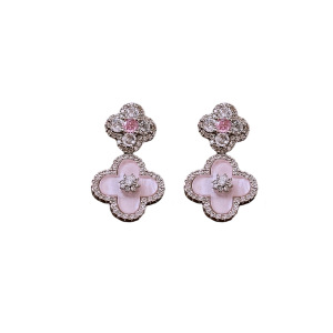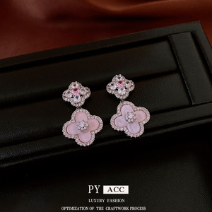 シルバー針ジルコン四つ葉の花マザーオブパールイヤリング韓国のライト高級ハイエンドイヤリングファッションニッチ気質イヤリング女性用