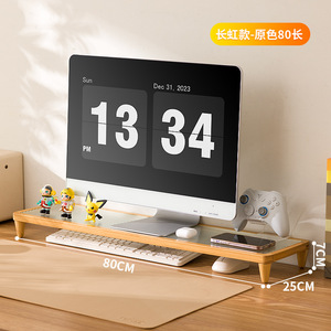 モニター高架ラック ブラックウォールナット無垢材コンピュータデスクトップパッド高収納ラック二層収納ラックテーブルグッズ