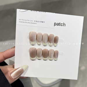 A328法式猫眼经典穿戴甲时音纯手工美甲春夏款可拆卸成品指甲贴片