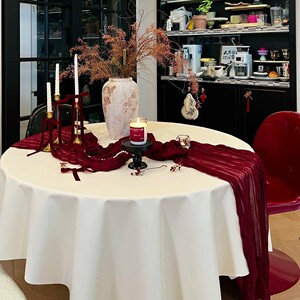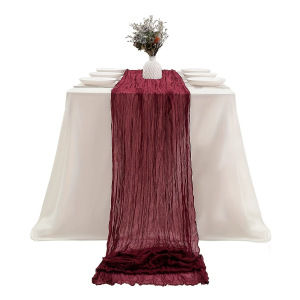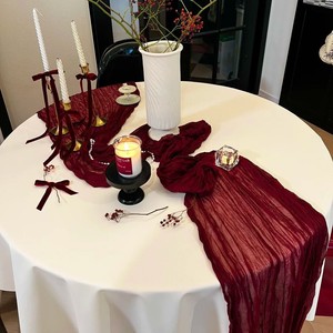 クロスボーダーアマゾンフレンチバーガンディしわ生地半透明テーブルフラグ西洋レストランラウンドテーブルクロスロマンチックな雰囲気在庫あり