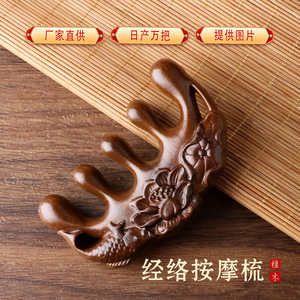 金糸檀木ハスの花の彫刻マッサージ櫛の頭皮の頭のマッサージの広い歯の櫛の小さい櫛の実木の櫛の経絡の櫛