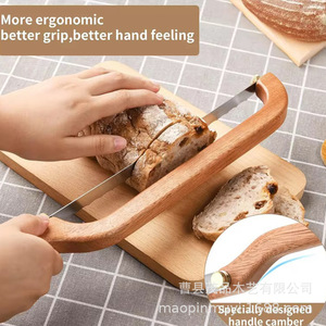 木製パンナイフ国境を越えてハンドル付き焙煎パンスライスナイフ実木切断のこぎりトースト曲げ分割ナイフ